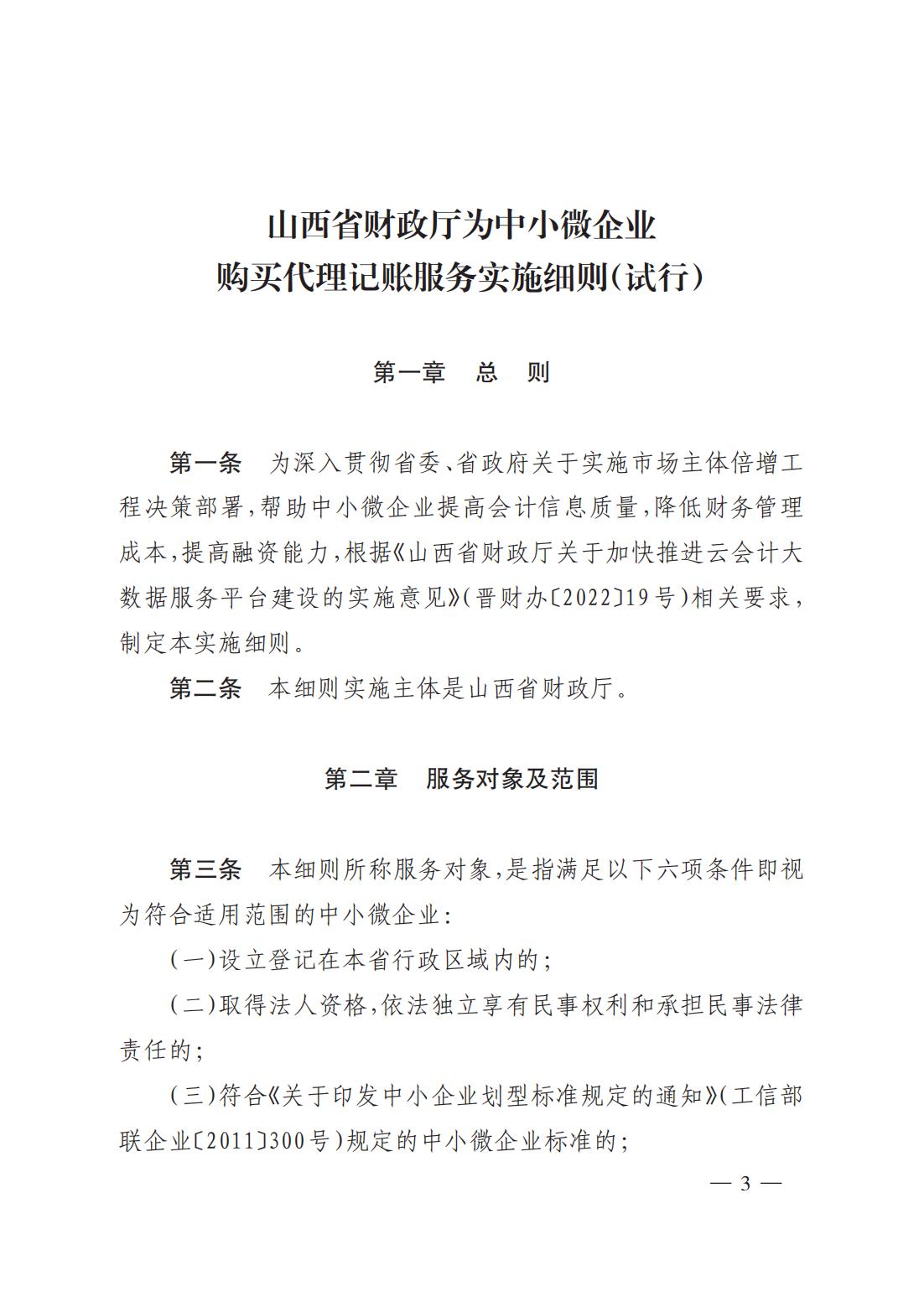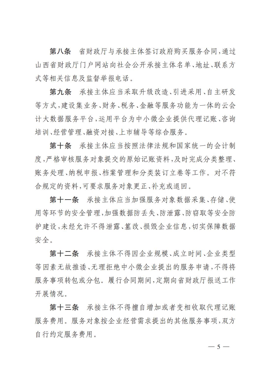 關(guān)于印發(fā)《山西省財政廳為中小微企業(yè)購買代理記賬服務實施細則(試行)》的通知